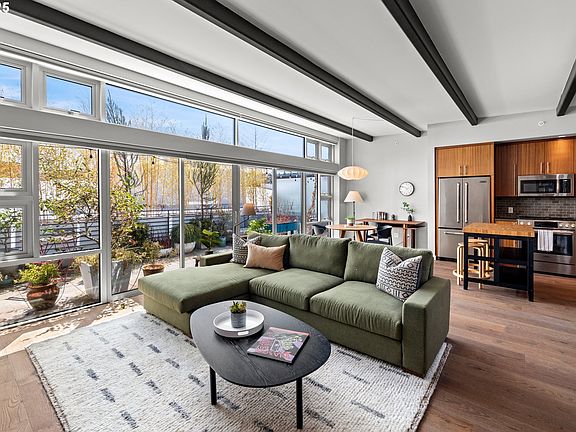 Penthouse style living at an incredible price point! This modern and light filled condo is in the heart of the Pearl District - one of the most vibrant areas of the city. The building is an exceptionally well re-designed historic warehouse that offers endless neighborhood conveniences at your fingertips. BlOCK 90 is a walker’s paradise. On the other hand, the quiet, open concept living on the top floor is a haven awaiting you behind your front door. The space is well appointed and draws you towards the lush private terrace boasting a beautiful wall of windows that brings the outside in. Recently updated: custom window treatments, redesigned primary bedroom for privacy, lighting, flooring, and appliances. Includes deeded storage and parking. Come take a look, fall in love, and make it your next home.