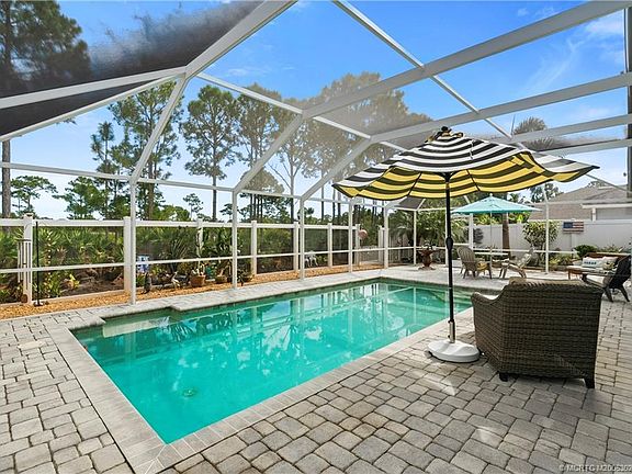 Extensively rеmοdеled 3-bedrοom, 2‐bath, 2-car garage рoοl home with private preserve views located on a quiet cul-de-sac in the highly desirable Pines community of Jensen Beach. This move-in ready home offers countless upgrades, including a brand-new pool screen enclosure (2025), impact windows and sliders (2022), roof (2020), pool (2019), and A/C (2019). The remodeled kitchen features quartz countertops, newer appliances including a double wall oven, cooktop, vent hood, wine cooler, and a custom desk area. Both bathrooms have been completely renovated. Additional features include 24" porcelain tile flooring in the main living areas, laminate flooring in the bedrooms, and upgraded fans and lighting fixtures throughout. Enjoy outdoor living at its finest with a fenced yard, beautiful pool, and tranquil preserve views. Conveniently located just minutes from the beach, shopping, and dining. No expense spared, this home is truly a must-see!