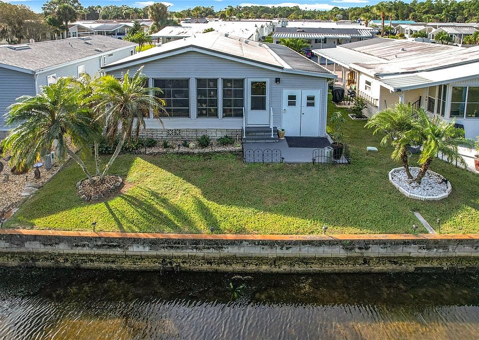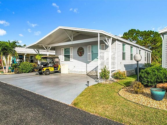 Turnkey Coastal Canal-View Home with Golf Cart in Lily Lake Golf & RV Resort Step into this charming, light-filled mobile home nestled in the heart of the vibrant Lily Lake Golf & RV Resort community. From the moment you arrive, you’re greeted by lush landscaping and vibrant orchids that frame the entryway with tropical flair. Inside, the home opens to a spacious, breezy layout featuring: • A stylishly appointed kitchen with dual-sided access and coastal-inspired finishes • A sunny dining nook and open-concept living room adorned with beachy artwork, elegant lamps, and soothing tones that evoke the serenity of a seaside retreat Just beyond the living room, step into the enclosed sun porch with panoramic windows overlooking a tranquil canal—perfect for birdwatching, fishing, or simply relaxing. A cozy outdoor seating area completes the peaceful vibe. Down the hall, you’ll find: • A laundry area with washer, dryer, and ample storage for cleaning supplies • A beautifully decorated guest bathroom in soft coastal hues • A serene primary bedroom with an en suite bath featuring updated countertops, light turquoise and accents, vinyl plank flooring, and generous closet space • A welcoming guest bedroom with beach-themed furniture and décor Bonus features: • Turnkey and move-in ready—fully furnished with tasteful coastal décor • Golf cart included for easy community access • Generator wired to the main breaker—a must-have for Florida storm season • Outdoor storage shed for tools and gear