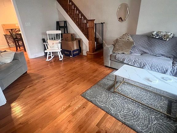 Very large 3 bdrm home in great neighborhood awaits you! Plenty of room for all your needs. Nice wide street with front yard and porch leads into hardwood floors and spacious living room and separate dining room. Nice updated Full Size kitchen with another bonus laundry room in rear that leads out to huge yard for all your entertaining desires! Two sets of stairs for your convenience to access 2nd floor spacious bedrooms and nice modern bathroom. Unfinished full size basement for storage.