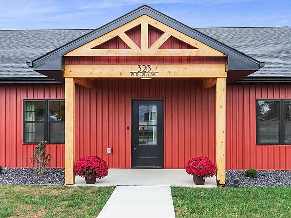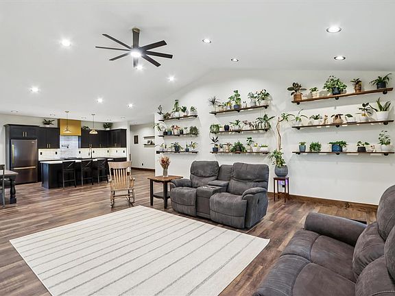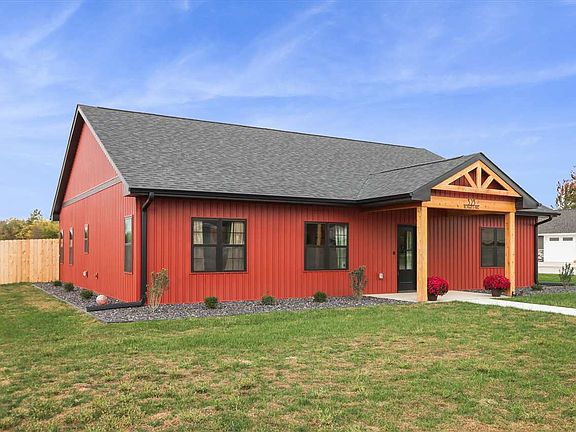This impressive ranch-style home, built in 24, offers a luxurious & modern living experience w/ an abundance of amenities. Situated on the outskirts of town on a corner lot, making it a prime location. The kitchen is a chef's delight, featuring dark stainless steel appliances, hood vent, & pot filler. The Cambria quartz countertops provide a durable & sleek workspace, while the island w/ seating offers casual dining. The backsplash, farmhouse sink, dark cabinetry w/ soft-close features & stylish hardware create a sophisticated ambiance. The adjacent dining space w/ an exterior door leading to the patio seamlessly connects indoor & outdoor living. The living room is a focal point w/ soaring vaulted ceilings, recessed lighting & LVP flooring that extends throughout the kitchen & dining areas. The primary suite is a true sanctuary, boasting an incredible bathroom that exudes luxury featuring a tile floor, walk-in tile shower w/ soaker tub, & vanity w/ dual sinks. The walk-in closet is thoughtfully designed w/ washer, dryer, & folding station. 2 additional bedrooms w/ walk-in closets share a dual-entry bathroom featuring a tub/shower & separate vanities. Notable features include in-floor heat throughout including garage, whole-home water filtration system, tankless water heater, 3 Ring doorbells, hot tub & generator hook-ups.