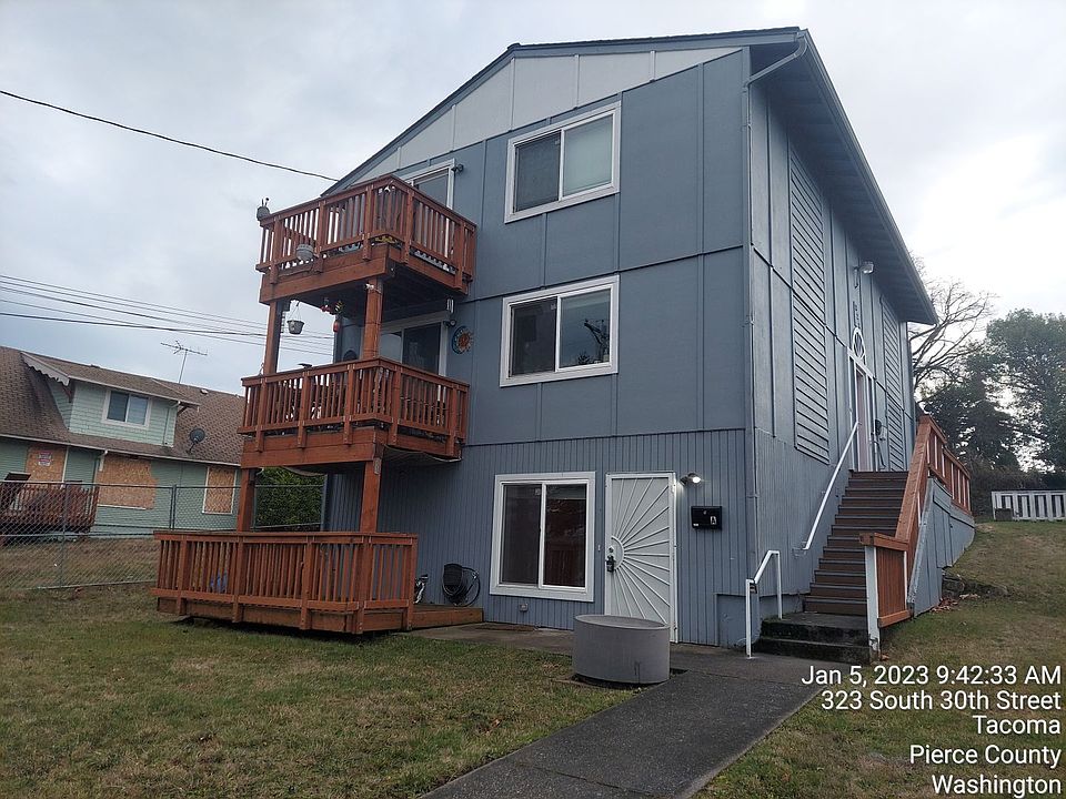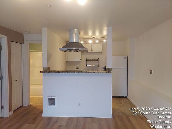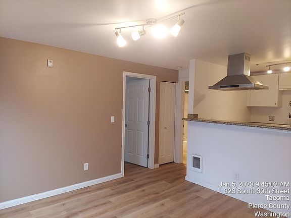 Welcome home to this tri-plex rental - first floor unit available with off street parking. A nice covered deck is part of your unit as well. The main area is a great room concept. The living room has a nice large window. The kitchen area with great cabinets and counter space. The appliances are a full size range and refrigerator. The bedroom is nice with closet space and a full bathroom and a stackable washer and dryer in the apartment. The parking is off street and is right in front of the unit. Great located if you work downtown and or in the Fife area. Easy access to I5 and Hwy 7/705. A must see.