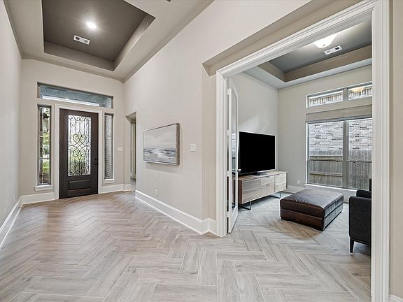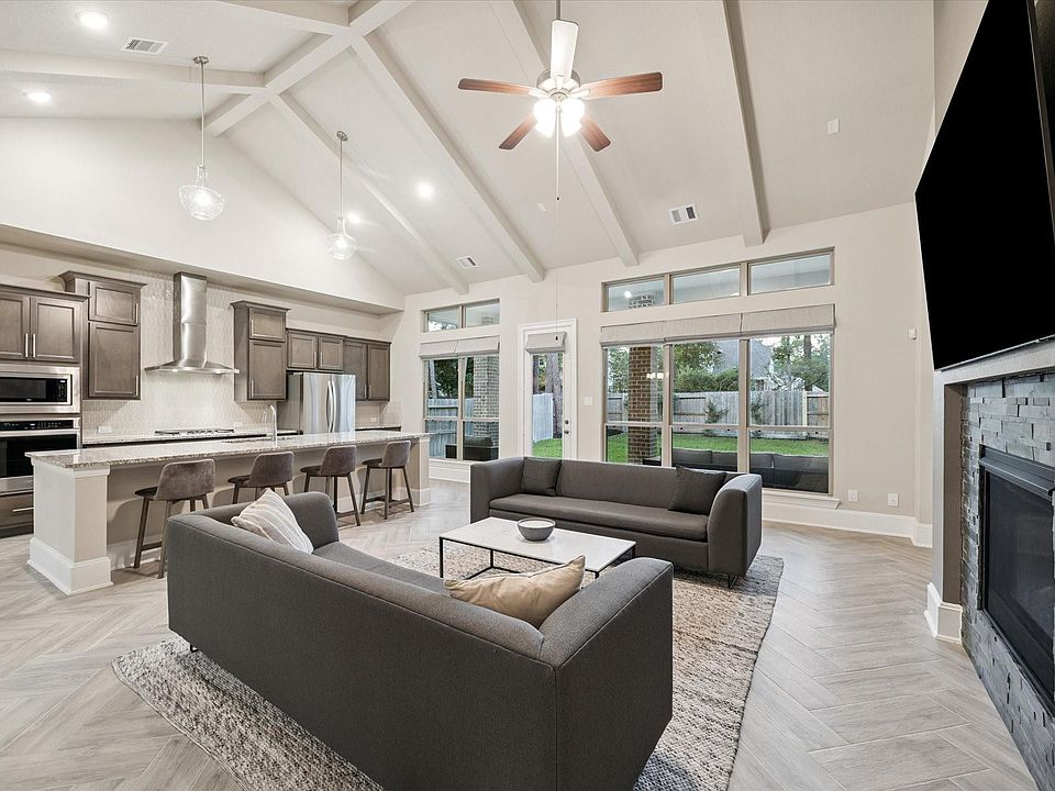 Welcome to effortless elegance in this beautifully crafted one-story Westin Home in the coveted, The Woodlands Hills. This Larson Floorplan with custom built-ins blends comfort, style, and functionality with 4 bedrooms, 3 full baths, a spacious family room, informal dining, and a private study. The gourmet island kitchen opens to the living area with sleek finishes and ample storage. Enjoy a luxurious primary suite with dual walk-in closets and spa-inspired bath, plus a covered patio and 3-car tandem garage with custom cabinetry. Woodlands Hills offers 2,000 acres of forested beauty just 13 miles north of The Woodlands, featuring 112 acres of open space, 20 parks, a 17-acre Village Park with fitness center and event space, and miles of scenic trails with dedicated bike lanes. Whether you seek tranquility, connection, or adventure, this master-planned community delivers it all.