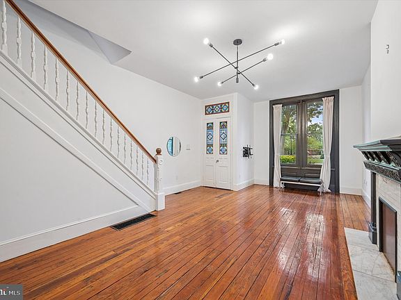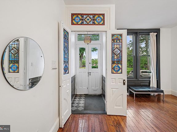 Welcome to 323 Tasker Street, a stunning 4-bedroom, 2-full bath brownstone that blends historic charm with modern updates in the heart of Pennsport, directly across from Dickinson Square Park. This gorgeous home features a welcoming slate-tiled vestibule with stained-glass accents and a vintage chandelier, leading into bright and spacious living and dining areas with soaring ceilings, original pine floors, ornate moldings, and two mantels. The custom kitchen is a chef’s dream with soapstone countertops, a commercial-grade range, stylish cabinetry. Exit from the kitchen to a private patio—perfect for entertaining. The second floor offers three well-proportioned bedrooms, including one with an original armoire, another with a beautiful mantel and bay windows, and a full hall bath with a clawfoot tub and designer fixtures. A washer and dryer are also conveniently located on the second floor in the front bedroom. The third floor is a luxurious primary suite with a walk-through closet, built-in shelving, and a full en-suite bathroom. The basement offers an abundance of additional storage with an opportunity for an additional laundry hook up if desired. Ideally located just steps from the park’s playground, basketball courts, and weekly farmers market (May–November), and around the corner from Grindcore House, Gooey Looie’s, and all the shopping and dining of Passyunk Square. Easy access to I-95, I-76, and major retailers like Target, IKEA, and Lowe’s makes this the perfect mix of timeless elegance, modern comfort, and unbeatable convenience.