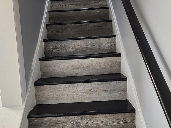 Kitchen, Living area, laundry hookups on 1st floor, 3 bedrooms and 1 bath on 2nd floor.