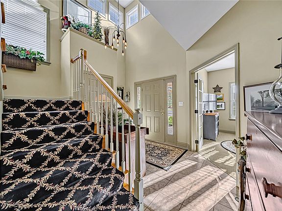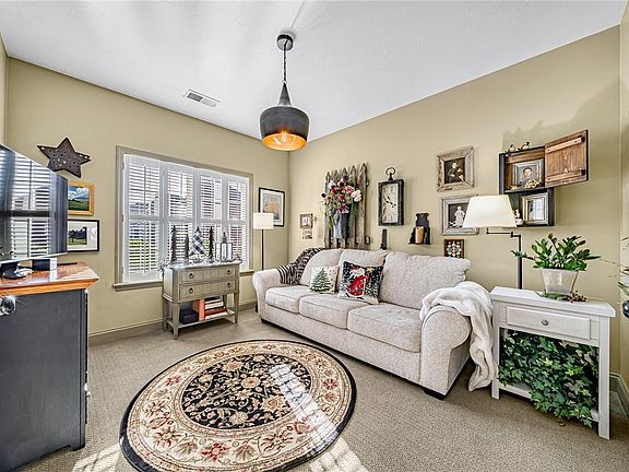 This exceptional patio-home is located in the quaint condo community, The Villages of Ligonier. Entering the grand 2 story foyer, you will instantly fall in love. There are architecturally interesting ceilings that vault in areas and have sharp contrasts in others, a cat walk that over looks the lower level, 48in cabinets in the kitchen with a contrasting island and quartz tops, Kenwood Elite appl & a custom bar area, open great room/dining with gas fireplace, custom lighting & plantation shutters. The primary bedroom, laundry & a convenient den/sitting room w/ a 6panel glass door(make sure you notice the herringbone detail in the rug) are all located on the main level. You are led upstairs by a cascading oak staircase where you'll find 2 large bedrooms, a guest bath, and a large storage/utility room. There is no lack of storage! The outdoor space is one of kind and upgraded with a 3ft expansion to the exposed aggregate patio and an oversized common area to enjoy.