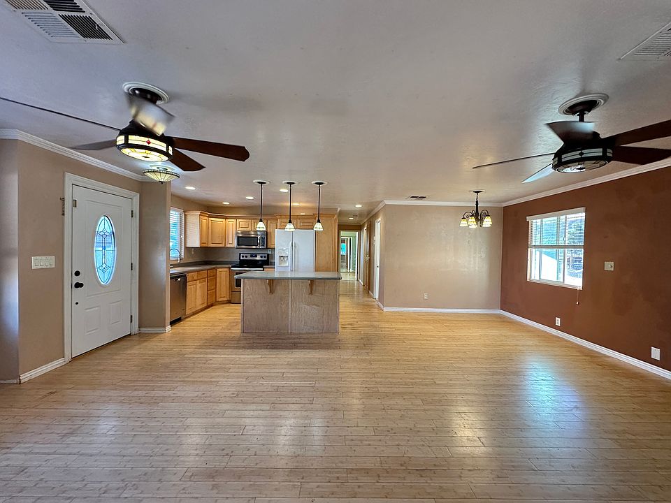 Large fenced-in yardCeiling fansLarge islandGreat lightingCozy fireplace