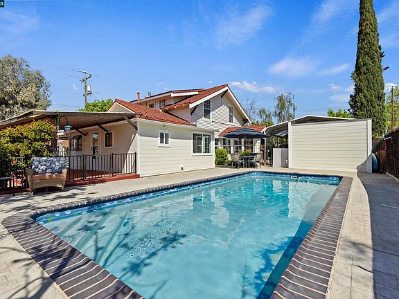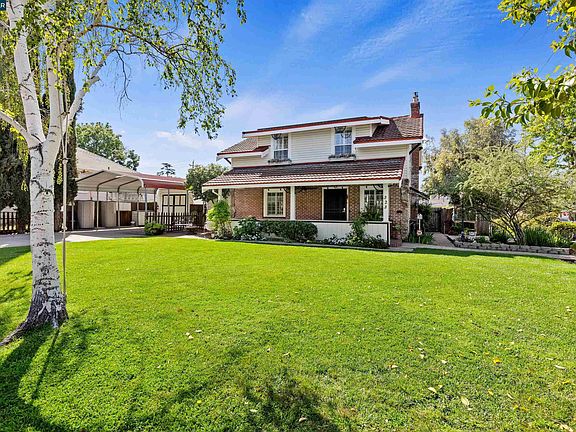 This elegant country cottage is nestled on a coveted corner double lot in Antioch’s historical Rivertown District. Just a short stroll from the San Joaquin River, this home invites you into a welcoming living space, complete with a cozy gas fireplace ideal for relaxing evenings. The formal dining area sets the stage for delightful gatherings, while the upgraded kitchen boasts stone countertops, abundant cabinetry, and a lovely eating nook with a view of the pool. With five bedrooms and two bathrooms, this home offers ample room for everyone. Conveniently, one bedroom and a bathroom are located on the first floor. The residence is tastefully enhanced with hardwood floors, dual-pane windows, shutters, and charming French doors, while the new AC units, whole-house solar, and upgraded metal roof provide modern conveniences and peace of mind. Designed for entertaining and relaxation, the meticulously curated grounds feature lush plantings, a large swimming pool, a thriving garden, a covered deck, and a BBQ area. The covered patio off the living room creates a seamless blend of indoor and outdoor living. A long, extended driveway leads to a two-car covered parking area and a generous detached storage building. Enjoy proximity to the Antioch Marina, riverfront restaurants, and more.