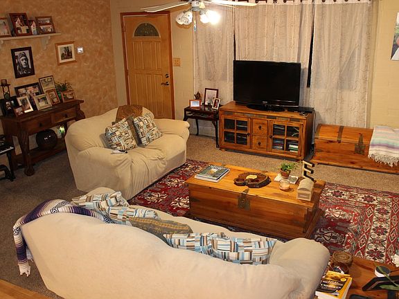 BEAUTIFUL HOME WITH STUNNING MOUNAIN VIEWS AND OVER LOOKING THE TOWN. HAS A NEWER 2017 A/C HEAT PUMP WITH DUCT WORK AND WITH VENSTAR REMOTE THAT ALLOWS YOU TO CONTROL REMOTELY. WINDOWS HAVE BEEN UPGRADED TO DUAL PANE. LOTS OF EXTERIOR AND INTERIOR STORAGE. VERY LARGE AZ ROOM WITH MOUNTAIN VIEWS. MASTER BEDROOM WITH MOUNTAIN VIEWS. NEWLY TILED BATHROOM AND KITCHEN. VERY NICE FIREPLACE IN FRONT ROOM AND AZ ROOM. THIS HOUSE IS VERY INVITING, WARM AND COZY.