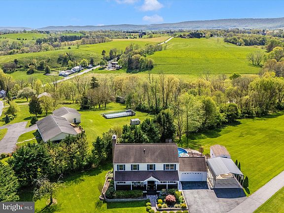 Privacy personified, just a short walk or drive to downtown Middletown, this stunning Colonial is in the most picturesque setting. It is incredibly unique to find over one acre this close to town, and yet, the reality awaits you. This beautiful Colonial has been lovingly and thoughtfully renovated to provide modern convenience and incredible functionality. As you approach, you are struck by the most beautiful setting and charming front porch. Enter to a traditional main level layout that has hardwood flooring, ample space to entertain and expansive windows. The kitchen has been updated with granite countertops and a unique two tiered kitchen island and stainless appliances. Enjoy mountain views from the comfort of your kitchen. The kitchen leads beautifully into a formal dining area and family room with a cozy fireplace. The family room leads nicely to your two-tiered deck. Off the foyer is a spacious and inviting living room that could also be a private main level office. The main level also features a powder room that has been tastefully updated and soaring two story entryway. The primary suite is very spacious and has en-suite bath that has been recently updated. The detailed tilework and functionality of the bathroom must be seen! The bedroom level features three additional bedrooms and a shared full bath. The hall bath has been stunningly renovated as well. The lower level is a great rec room/den with a large wall projector that provides additional living space and potential game room and a full bathroom. It leads to a rear patio with walk-out level. Undoubtedly, one of the best parts of the home is the exterior features and views. The home sits back off of the main road with a shared private driveway. You have an attached two car garage and a carport for extra covered parking. Entertain in the rear with your above ground swimming pool with large two-tier deck. NO HOA fees! ADT home security system conveys! Run to this incredible opportunity. Welcome Home!