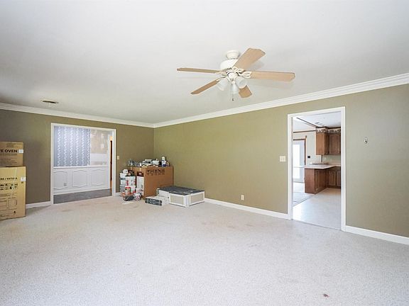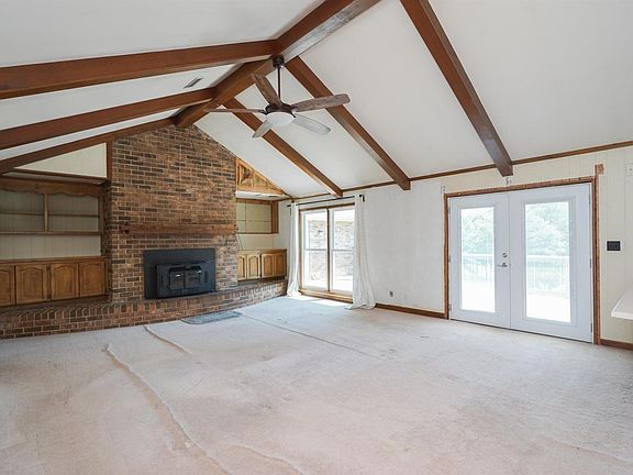 Remodel ready! This house is SOLD AS IS and comes complete with appliances in the box, flooring in the box as well as two closet systems ready for you and your handy man. Large rooms provide great space in this brick ranch home. As you enter the foyer your see the large dining room. The great room features a brick hearth that is the center of the room with built-in shelving and beams on the ceiling to define the vaulted space. The great room is open to the kitchen to provide an open concept for family enjoyment. The laundry/utility room has cabinets galore for added storage plus a utility sink. enjoy time spent out side on the expansive deck wood columns/ post were built to house party lights for festive fun. The are four bedrooms on this main level. The owners suite is in the back of the house with access to the deck and offers a full bath plus a walk in closet. Two of the other bedrooms share a convenient jack and jill bath with a double vanity. The fourth bedroom is spacious as well and is conveniently located across the hall from a full bath also used as a guest bath for this main level. Downstairs offers a large den with an additional fireplace an open area perfect for a rec room. There are two additional rooms one with a closet without window and one with a window no closet. There is an unfished space that features a garage door and lots of area for a workshop or hobby room. There is a half bath on this level that is in a remodeled state at this time. There is a great drive/ patio area under the deck behind the house. This house sits on 7 acres with the property going back to the creek (per the owner) and features a barn plus a covered pad/ pavilion type structure for added fun. There is an easement for the Power lines on the left side of the property. Taxes are reduced as the current owner has some of the property in an agricultural status. There are many disclosures to the property. Types of financing will be limited to Conventional or Cash due to the ongoing remodel in place.