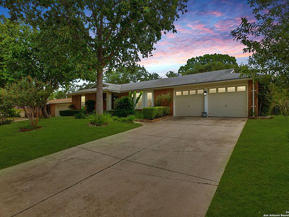 Welcome to 3230 Colony Dr - a beautifully maintained single-story home in the heart of San Antonio that blends comfort, character, and timeless charm. This 3-bedroom, 2-bath residence offers 1,591 square feet of inviting living space on a lush, tree-filled lot with incredible curb appeal. Inside, large windows fill every room with natural light, highlighting the home's open and welcoming layout. The elegant dining room features a classic chandelier and bay-window views of the front yard, while the spacious living area flows seamlessly into the kitchen and breakfast nook - perfect for everyday living or entertaining. The kitchen includes rich wood cabinetry, ample counter space, and a breakfast bar that opens to the main living area. Step outside to a peaceful backyard retreat complete with a covered patio, ceiling fan, and plenty of space to relax or dine beneath the shade of mature oak trees. The yard is beautifully landscaped with vibrant greenery, garden beds, and a cozy sitting area that creates a true sense of tranquility. Additional highlights include a two-car garage, manicured lawn, and well-maintained exterior that reflects pride of ownership throughout. Ideally located near major highways, shopping, and dining, this move-in-ready home offers the best of single-story living in one of San Antonio's most established and convenient neighborhoods.
