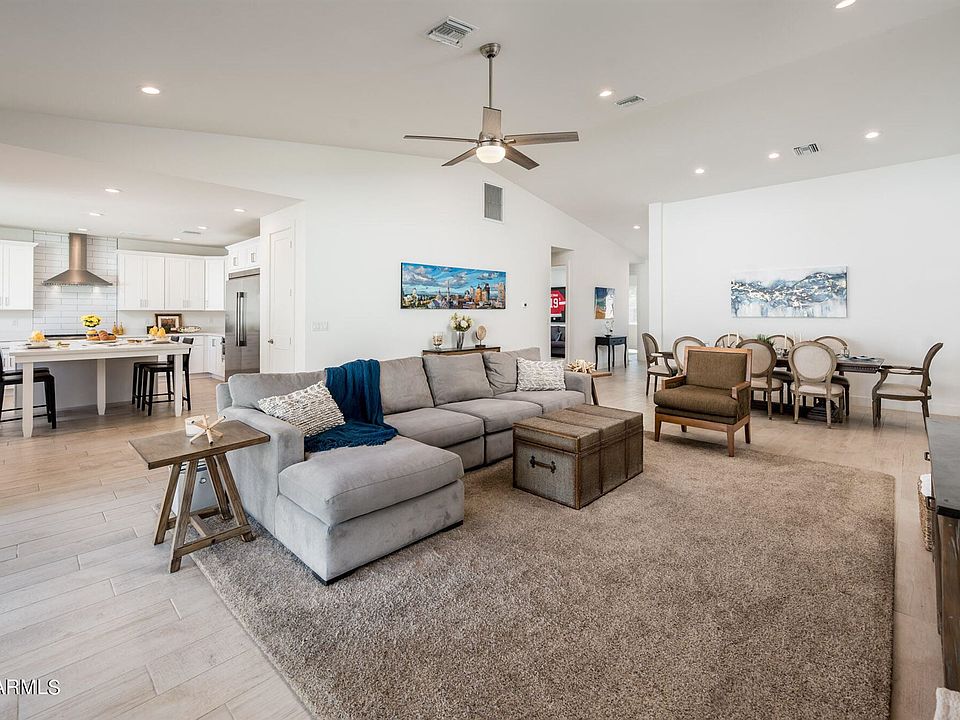 Welcome! Situated in highly desirable Arcadia Lite just minutes from Chop Shop, La Grande Orange and the original Postino, this 2021 new construction home offers a well-thought out split floor plan, vaulted ceilings and very low maintenance thanks to artificial turf and tile throughout. Holidays and entertaining are a dream with a paver front courtyard, north-facing back yard with covered patio, and great room. Primary Suite delivers door to patio, separate shower/tub and large closet. 4th bedroom may serve as a flex room/office. The U-shaped kitchen offers maximum storage and utility with 6-person island and 6-burner gas range. The home is light and bright yet energy efficient with gas tankless water heater and heating. Garage has extra storage. Full block wall. You'll love this home!