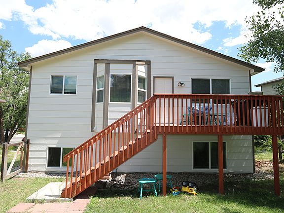 Three bedroom bi-level home, 2 bedrooms and 1 full bath upstairs. Downstairs is a 2nd living room with gas fireplace, 1 bedroom, 1 full bath and laundry room. 1342 sq ft with 2 car garage, rear deck, central AC and sprinkler system. Southwest location near the World Arena, Ft Carson and I-25. All flooring is being replaced when current tenants move out. No pets and no smoking.