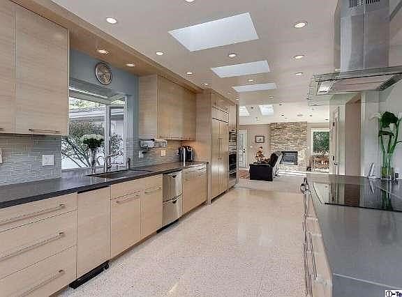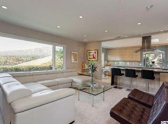 This sprawling single level remodeled hilltop Mid Century home in desirable Montecito Park is situated on a large 23,902 sq. ft. lot on a private ridge w/city & mountain views from both the front and rear of the house and almost every room. This 3 bedroom, 3 bath home has spacious rooms and is very light & bright w/many skylights and lots of low glare high efficiency glass to enjoy the impressive views. The home has a great open floor plan that surrounds the pool for a great entertaining flow. There is a new high-end custom gourmet kitchen with Sub Zero & Wolf appliances, matched horizontal grain cabinets & gleaming white terrazzo floors. The newly remodeled family room has a wall of glass with views of downtown L.A. & beyond. The dining room features a vaulted wood beam ceiling, a wall of glass and gleaming terrazzo floors. All bedrooms are located in a separate bedroom wing. The spacious master suite includes a marble bath w/steam shower, jetted tub and toilet/bidet room. The highlight of the suite is a huge walk-in closet room. The large landscaped rear yard features a fully automated Pebble-Tec pool & spa. An impressive waterfall extends the entire back side of the pool.