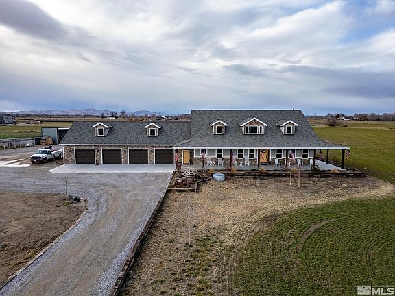 Welcome to this picturesque slice of Fallon Nevada Paradise. 2967 sf w/ 4 bedrooms, 3 1/2 baths that is brimming with character & comfort. The spacious open living area are bathed in natural light, creating an inviting atmosphere for relaxation or entertaining guest. Kitchen is a chef's delight, high end appliances, ample counter space & a large pantry with cabinets and shelves. Located on 22.9 acres with water rights, 4 car garage with an above finished 1200 sf bonus room & a 30x100 machine shed., Shown by appointment only to pre-qualified buyers. Agents to give the buyers pre-qualification letter or proof of funds to listing agent before showing appointment is approved. Listing agent or representative to be present for all showings. Please allow time for appointments. Home has many beautiful and extra features such as real hard wood floors, Quartzite and Granite counter tops, full double fridge, custom Knotty Alder cabinets and solid wood doors through out. 4th bedroom is a mini master suite with a walk in closet, full bathroom and access to the back patio. Master shower is large with double shower heads, custom tile work and a 16x8 walk in closet with cabinets and the mud room is 16x8 with cabinets, bench and a sink. Roof is a 50 year composition and all windows are Anderson. Bonus room above the garage is finished with carpet and a mini split heating and air system. Trees and flower beds have a drip system. The 4 car garage is 2176 sf and large enough for bigger vehicles. Agents please look in the document section of the listing for a full feature list and additional information and TCID water right statement.