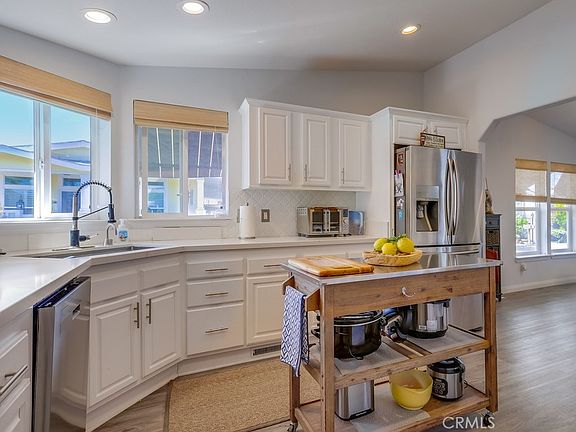 Coastal 3 bed, 2 bath manufactured home built in 2006 features just over 1,600 sq ft of living space, located within walking distance to Doheny State Beach and San Juan Capistranos new River Street Market. This well-maintained home features an open floor plan, updated kitchen with quartz countertops and white cabinetry, instant hot water, new dishwasher and abundant natural light.Outdoor features include a covered patio, covered carport, two storage sheds, a greenhouse, and mature citrus trees surrounding the property. The home is located in an all-age park with resort-style amenities including pool, spa, fitness center, clubhouse, and more. Land lease: $1,057/month. Convenient access to beaches, shopping, dining, and major freeways. A great opportunity for coastal living in a prime Orange County location. Call to schedule a tour today!