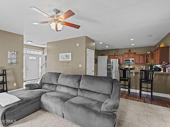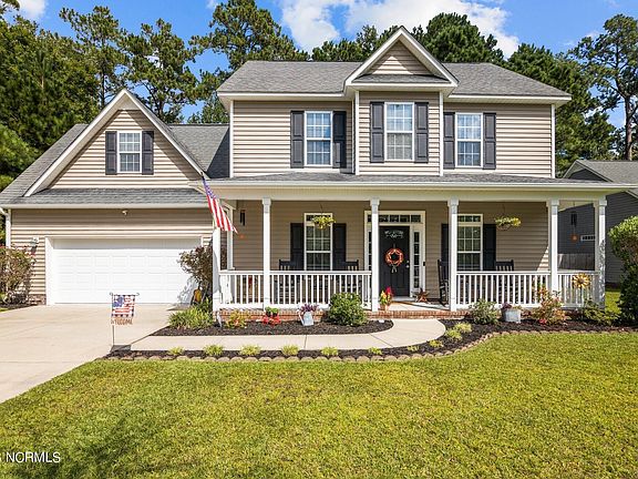 Highest and Best offer on Monday Nov 6, by 5:00 pm. SELLER OFFERING $10,000 CLOSING COSTS ASSISTANCE TO USE AS BUYER CHOOSES! One Owner two story home located in highly desirable Long Leaf Pines subdivision. Close to downtown dining and shopping - 14 mins to Slocum Gate (back gate) of MCAS Cherry Point. 3 BR 2 1/2 BA with FROG that could be used at fourth BR, Office or Play Room. Privacy fence in backyard with woods behind with Back patio perfect for entertaining and grilling, Cozy fireplace in den with stainless steel appliances in kitchen and lots of counter space. Formal dining room. Seller offering Home Warranty. Attic could easily be converted to 5th BR Covered front porch that you can enjoy on these late afternoons.