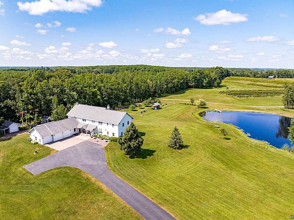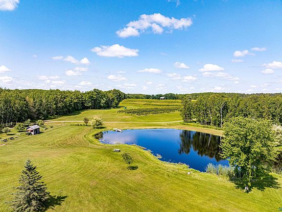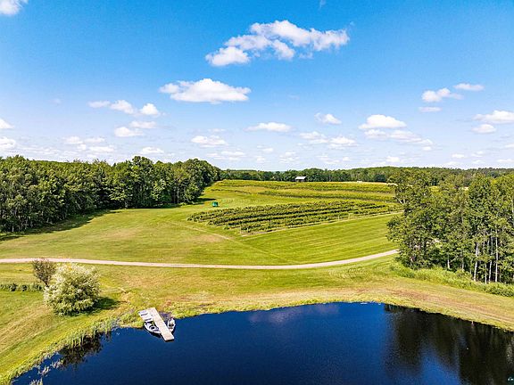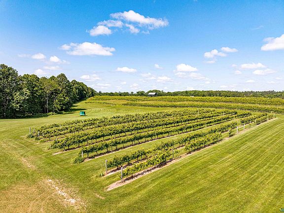 Extraordinary vineyard estate of 80 rolling acres with ponds, woods & tillable land, you can have it all! This beautiful 5 bed, 5 bath home has just just over 7000 sq ft. Stunning details throughout: 16’ tall fireplace in the great room of Montana Cabinet Gorge Granite Stone, hand-crafted Quarter Sawn White Oak throughout, built in coffee bar, true Chef’s Kitchen, all countertops are Vermont Quartz Highlighted Soapstone, reverse osmosis water supply and built in countertop steamer, new 60in bluestone range, dedicated baking area, attached greenhouse w/in-floor heat and grow mats, formal dining with 14’ tall ceilings. Too many details to list! This is a once in a lifetime opportunity. Vines prod. 8 lbs/vine, more than 13,000 lbs of grapes ea yr. Hardy grapes have produced beautiful dry, sweet & fruity white & red wines. This northern vineyard has sold wine throughout the northland. Storage for an RV. Could easily be expanded into an event venue with a future tasting room.