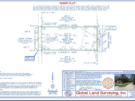 Cleared and Vacant lot 2.1 Miles from Reunion Tower and Downtown Dallas. Preliminary concept building plans are available to convey with the sale. This part of Dallas requires In-Fill permit which the process has begun with Engineering Firm and could be Picked Up by Buyer, saving a LOT of time. Topo Survey by Global Land Surveying, Inc, dated August 5, 2025, shows Vacant Lot is 6,250 SF (0.14348 acres).