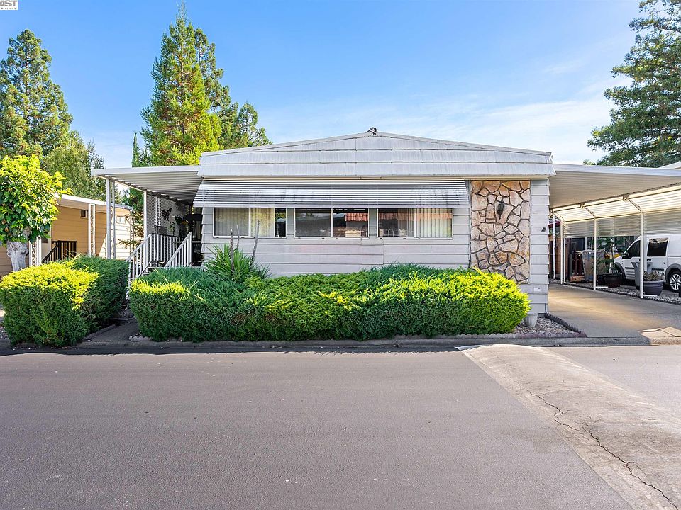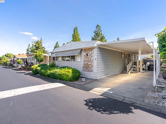 Hacienda Senior Community - Carefree living in Senior 55+ mobile home park. Built in 1973. Enjoy one story living in this two bedroom and two baths unit with approx. 1600 interior sqft. + inviting front porch. Open floor plan, living/dining room, functional kitchen dishwasher, refrigerator. Master bedroom with adjoining bathroom. Another bedroom and hall bathroom. Indoor laundry. Covered 2-car carport. Storage closet. Larger lot with side and backyard possibilities. Home also includes wheelchair lift.