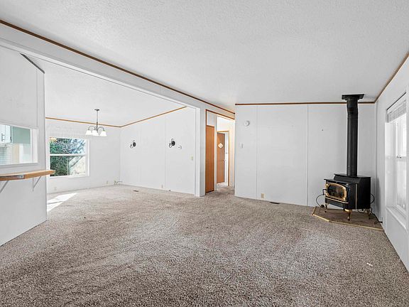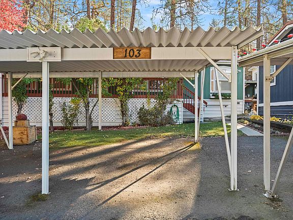 Welcome to this well maintained double-wide manufactured home in the desirable Sans Souci West Community of Spokane. Offering 1,344 sq. ft. of comfortable living space, this home features 3 bedrooms and 2 full bathrooms, including a freshly updated shower. Enjoy open-concept living with a spacious kitchen, dining area, and cozy living room. Step outside to find a covered porch great for enjoying morning coffee or evening shade in the summer. Two covered parking spaces and a peaceful hillside backdrop adds privacy and a touch of nature right in your backyard. Sans Souci West is a well-kept, welcoming 55+ community with great amenities and a friendly atmosphere—perfect for those seeking comfort and convenience close to everything Spokane has to offer. "Dimensions on floor plan are not exact, meant as reference only."