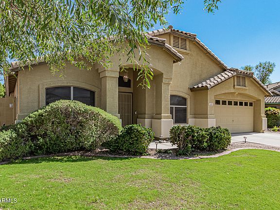 WELCOME HOME!! Beautiful 3-bedroom residence exuding charm! Sweet curb appeal, 2-car garage, and grassy front yard are just the beginning. Discover NEW HVAC (2021), vaulted ceilings, and NEW FLOORING (2021) throughout that give this home a bright, open, and airy feel. Welcoming living/dining room, cozy family room w/surround sound speakers, and roomy den to expand your options for an office or a fourth bedroom. The eat-in kitchen has SS appliances, a huge walk-in pantry, tile counters, white cabinetry, and a center island w/breakfast bar for casual meals. Retreat to the main bedroom to find a private exit to the patio and a lavish ensuite w/dual sinks, a Jacuzzi tub, and a walk-in closet. All bedrooms offer new window treatments (2024)! BACKYARD WAS COMPLETELY TRANSFORMED WITH GORGEOUS HEATED POOL AND HOT TUB INSTALLATION (2022), new plants, drip system, and pavers. Plus, the pool has afternoon shade, and removable security fencing. You won't be disappointed! Adobe Highlands is a vibrant, yet quiet place to live with PASEO HIGHLANDS PARK a short walk away, offering 6 pickleball courts, baseball fields, basketball courts, playground, and a community center. Don't forget the scenic hiking trails, water park, and great shopping, dining and medical facilities within minutes. EASY ACCESS TO THE LOOP 101, the I-17, and the upcoming TSMC chip manufacturing plant. Delight in the perfect blend of all this beloved home has to offer - don't miss the chance to make it yours today!