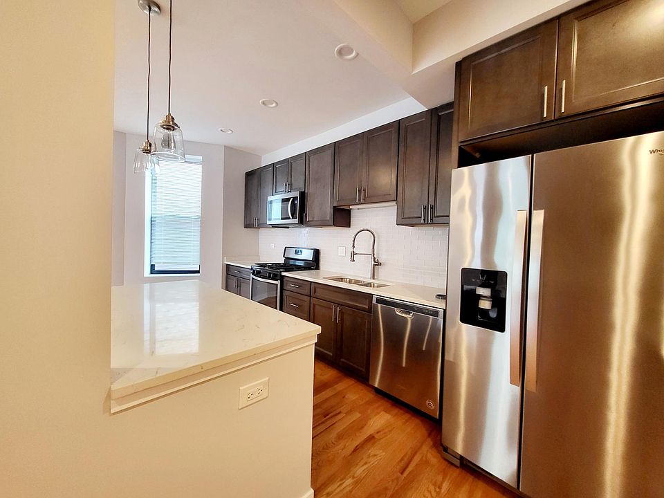 Newer gut rehab! Beautiful and cozy 3 bedroom 2.5 bathroom duplex down right by Humboldt Park. Hardwood floors, quartz countertops, kitchen with island and bar, tons of storage space, dishwasher, central AC/ heating, and separate mug room with in-unit washer/dryer included. Brand new kitchen with stainless steel appliances.