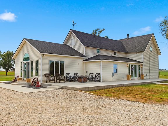 This updated farmhouse sits on 20 acres in northern Oklahoma, conveniently located near Alva, Burlington and Cherokee, Oklahoma – as well as Kiowa, Kansas. The property offers mature trees, open views, and abundant wildlife including deer, turkey, and quail, along with a fully stocked, spring-fed pond powered by a solar well. The 2,668 sq ft home includes 4 bedrooms plus a bonus room, 1 large bathroom with a soaking tub, walk-in shower, double sinks, and makeup vanity, a main-level primary bedroom, dining room, laundry room, and a spacious kitchen with a walk-in pantry, stone-coat countertops, propane cooktop, electric double wall oven, reverse osmosis system, and all kitchen appliances included. The home features an abundance of large, beautiful windows throughout, filling every room with natural light and stunning country views. Updates include a new roof (2025), new water heater (2025), new garbage disposal (2025), new rural water line (2025), new vinyl plank flooring (2025), fresh interior paint (2025), updated recessed lighting and fixtures (2025), and new concrete patios and sidewalks (2025). The home has two central heat and air systems—electric downstairs and propane upstairs—and a wood-burning stove for backup heat. Outside features include two storm cellars, a detached 2-car garage with storage, a small storage shed, and rural water and septic for the home. This is a well-cared-for farmhouse offering peaceful country living.