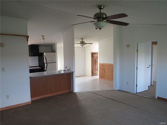 Nestled in Philadelphia, minutes from Fort Drum and shopping, this 3 bedroom, 2 bath manufactured home sits on 1.5 acres. As you walk in the front entrance into the living room, you will see cathedral ceilings and breakfast bar. The cozy kitchen has stainless steal appliances and ample cupboard space. Through the dining room is a laundry area. The master suite has a double shower. Newer furnace. Oversized storage shed and newly paved driveway.