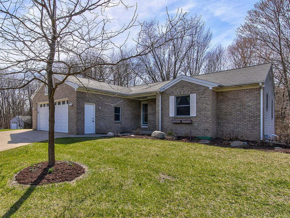 BEAUTIFUL PRIVATE SETTING for this updated Walk-out ranch, featuring 5 bedrooms, 3-1/2 baths, almost 2200 sf and located on 3 acres! The conveniently located kitchen has beautiful wood cabinets, laminate wood-like flooring throughout, and comes fully applianced. The Spacious Living rooms feature a custom stone wood-burning fireplace upstairs, and a field stone gas burning fireplace downstairs. The living room has an adjoining Dining area with a slider to the composite deck, which overlooks the Pond and Wooded Scenes. The Master Suite showcases a large bedroom, lots of closet space, and a updated bath which has a double sink vanity and walk in tiled shower. More Features include A New Pellet Stove in the basement, 30x40 Pole Barn with Water/Electric/Wood Stove, and an attached 2 stall