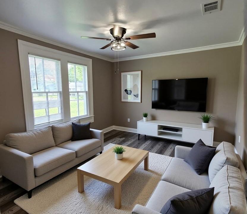 Beautifully renovated 1,250 sq. ft. home with modern updates and stylish finishes throughout. Step inside to find a bright and inviting living room with brand-new flooring, fresh paint, and abundant natural light.