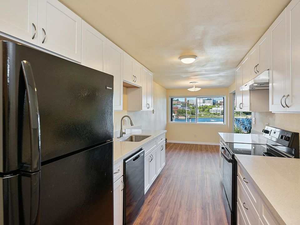 This very spacious two bed two bath apartment home has just been fully remodeled and is now available for occupancy! Enjoy your large private balcony and Portage Bay Views out nearly every window in the home! We have off street parking available. Enjoy a brand new washer dryer in home. Be the first to enjoy this gorgeous remodel! Parking available Flat monthly w/s/t utility fee $1000 deposit