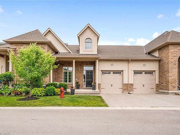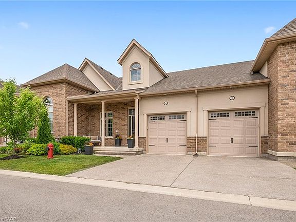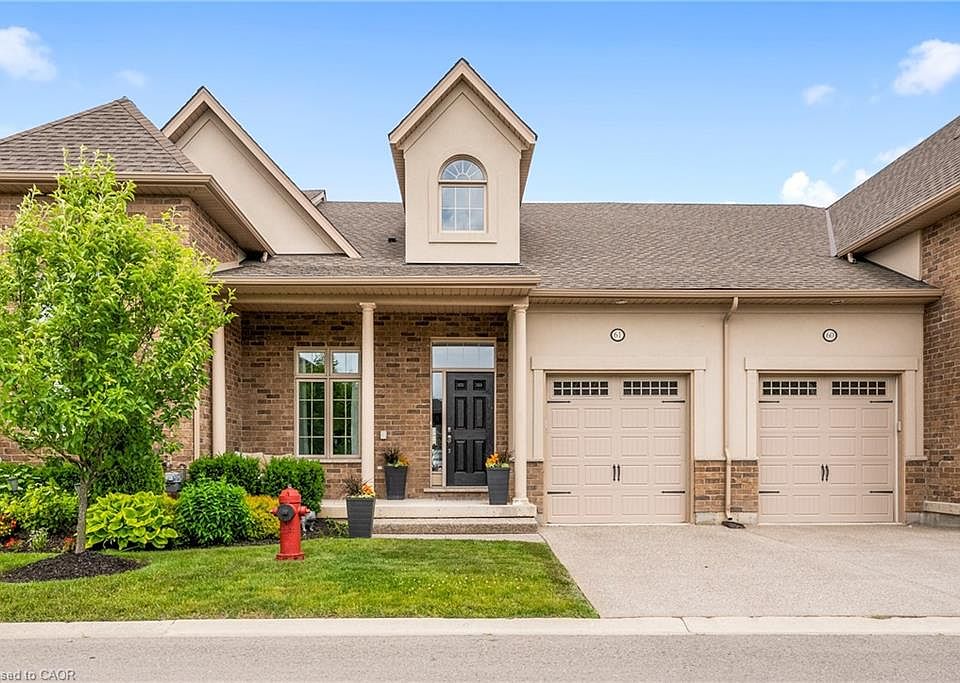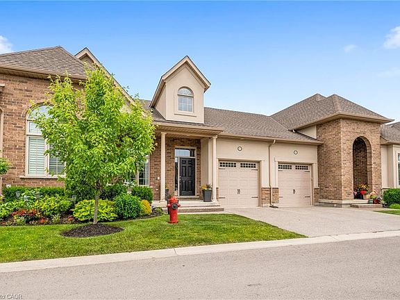 Welcome to this exquisite bungalow townhouse condominium, nestled in the highly sought-after Mount Carmel community of north Niagara Falls. Boasting an exceptional walk score and effortless access to the QEW and nearby amenities, this residence combines upscale design with unmatched convenience. Step into an architecturally captivating space featuring soaring vaulted ceilings, rich hardwood floors, and an elegant wood beam accent in the foyer. The open-concept layout is flooded with natural light from expansive windows, creating an inviting and airy ambiance throughout. Every detail has been thoughtfully curated—from the gleaming quartz countertops and premium stainless steel appliances to the dual fireplaces and rear raised wood deck, ideal for quiet relaxation or entertaining guests. The newly finished lower level adds incredible versatility with a stunning wet bar, an additional bedroom, and a luxurious 3-piece bathroom—perfect for guests, extended family, or in-law potential. Offering both function and finesse, this home is a true embodiment of luxury living. Book your private viewing today and experience the charm and sophistication of Mount Carmel.