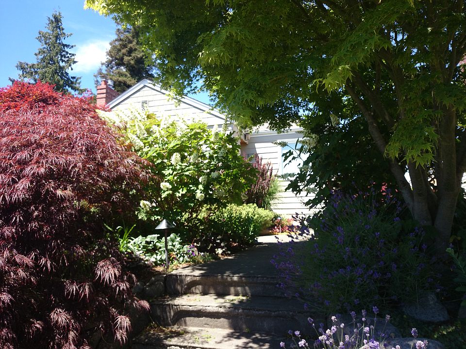 A wonderful home with excellent updates. Spacious, light LR & DR have gleaming hardwood floors. Custom gourmet kitchen, cherry shaker cabinets, skylight, eating area overlooking beautiful landscaped yard. Generous BRs updated baths, large family room & Rec room. Detached garage with alley access. Enjoy sunsets and sound view from front patio. Great back yard deck & patio Architectural roof, copper plumbing, new water line to street, earthquake retrofit, gas furnace, insulated windows. A gem!