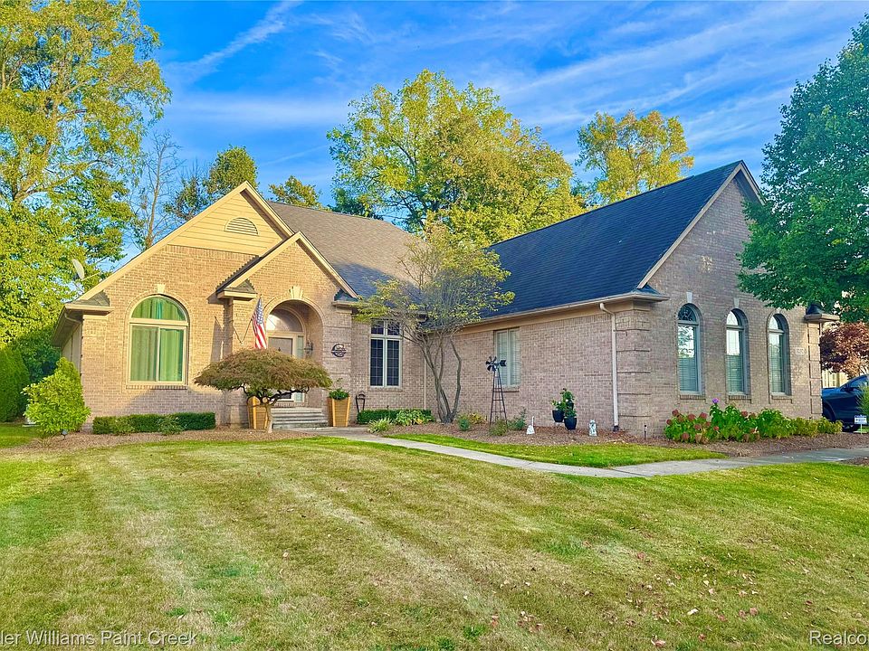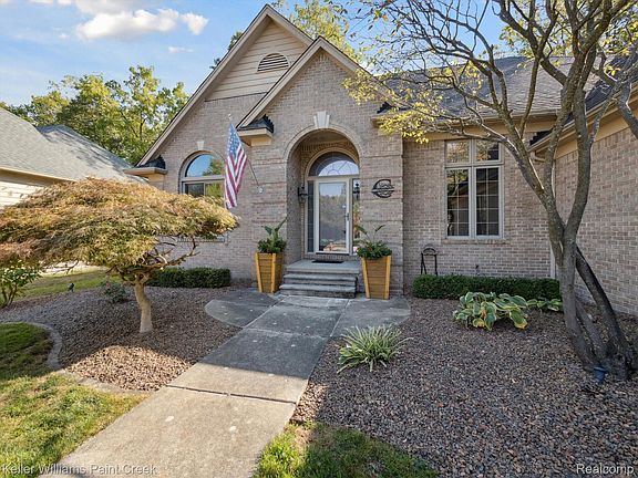 Welcome to this stunning ranch-style, 3 car-garage home located in a quiet, sidewalk-lined subdivision perfect for peaceful living with convenience in mind. Step inside to discover vaulted ceilings, an open architectural layout and an abundance of natural light pouring through beautiful windows. The spacious kitchen is ideal for entertaining, featuring warm maple cabinetry, gleaming granite countertops and ample storage. A kitchenette in the fully finished basement includes sleek white cabinets and quartz countertops-perfect for guests or multi-generational living, custom barn doors, a large half bath with ample room for a shower, a workshop and tons of storage. Enjoy cozy evenings in the family room by the gas fireplace or relax in the luxurious primary suite thoughtfully separated from the other two bedrooms for added privacy. The second bedroom is generously sized and features its own walk-in closet. Additional highlights include marble flooring in the foyer, whole house generator, central vacuum system, hot tub hookup and extensive storage throughout. Close to I-75, M-59, shopping, Oakland University, Golf Courses and Parks. Excludes: Freezer in basement, cameras and 5 TV mounts, 2 walnut slabs (shelves) in the family room, 2 shelves in 3rd bedroom, 3 white shelves in 2nd bedroom, coat hooks in garage entrance. TV mount in basement stays. BATVAI. Please be advised, video surveillance in the interior and on the exterior of home. Listing Agent related to Seller.