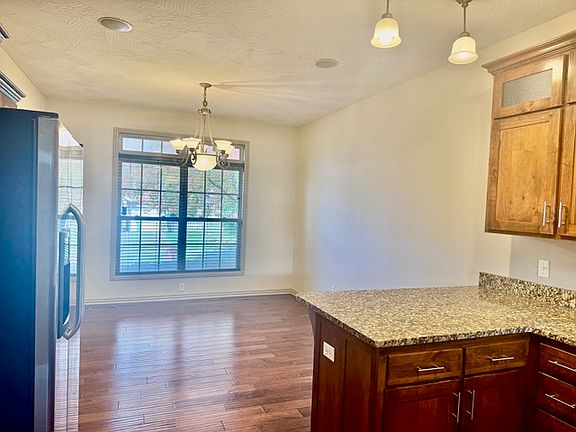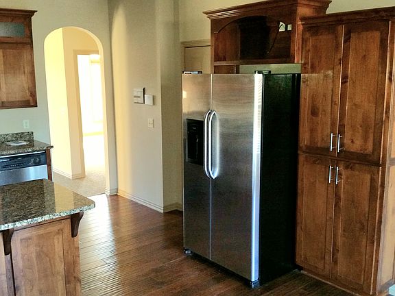 Home features granite countertops Alder cabinets gas fireplace jetted tub in home music system security system ready beautiful kitchen/dinning room with hardwood floor 9' ceilings with Transom windows upgraded woodwork dual sinks and large walk-in closet off the master br; walk-in tiled laundry room. Includes stainless steel range/microwave, dishwasher, and fridge.