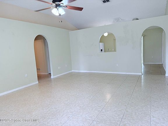 Ready for Immediate lease! Charming CBS single-family home featuring 3 bedrooms, 2 bathrooms, and a 2-car garage located in SE Palm Bay. This home offers a comfortable living/dining room combo, a spacious kitchen equipped with all appliances and a split bedroom floor plan with neutral colors throughout. Enjoy tile flooring in every room, alarm system, a garage door opener, a large enclosed porch, and a generously sized fenced yard with sprinkle system. Rental Requirements: Minimum credit score of 620, Income must be at least 2.5x the monthly rent, Proof of stable income, renter's insurance, and good rental history required.