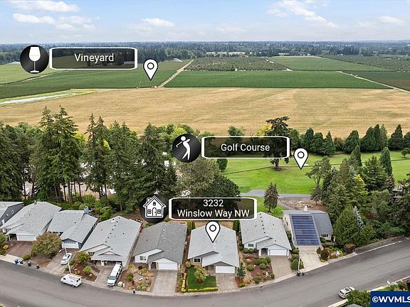Discover your move-in ready dream home in Salemtowne, a premier 55+ Golf Course Community! This updated 2 Bed, 2 Bath gem, originally owned by Salem Philanthropist Hallie Ford, blends luxury, comfort & privacy. Enjoy breathtaking views of the golf course, vineyards & mountains from the living room w/ cozy gas fireplace. The home features high-end hardwood floors, marble bathroom floors, and a spacious fenced backyard with a brand-new Trex deck. New furnace, roof, windows, and A/C ensure year-round comfort.
