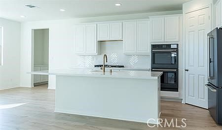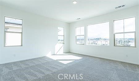 This home sits on a lot with no homes behind! This 4 bedroom, 3 bath home includes one full bedroom and bathroom downstairs, a fireplace, pre-plumbing for laundry sink, GE washer, dryer, refrigerator and window coverings. The kitchen includes soft-close maple slate colored cabinets, and other various upgrades throughout the home. Braverde is one of Menifee's newest master planned communities conveniently situated close to the 215 freeway, Menifee Town Center, and minutes to the Temecula wineries. This brand-new home will not last long!