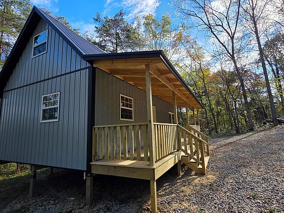 Introducing a wonderful little cabin on an incredible property t¬¬hat is sure to please. New Amish built 960 sq ft, framed out cabin with a heartwarming 6 x 32 covered porch just waiting on a rocking chair and cold beverage to sit and enjoy the peaceful country setting. The interior is framed out and ready for you to put your personal touch on it and make it your own. The property is beautiful with groomed trails meandering through the rolling topography with mature woods and the deer and turkey are plentiful. Newly installed gravel driveway with gated entrance meandering up the hill to a hidden gem of a build spot. Country home, weekend getaway, or Air BNB..the possibilities are endless. Tons of privacy yet easy access to utilities, give us a call and come check out the tranquility of Seclusion Cabin at Big Timber Ridge.