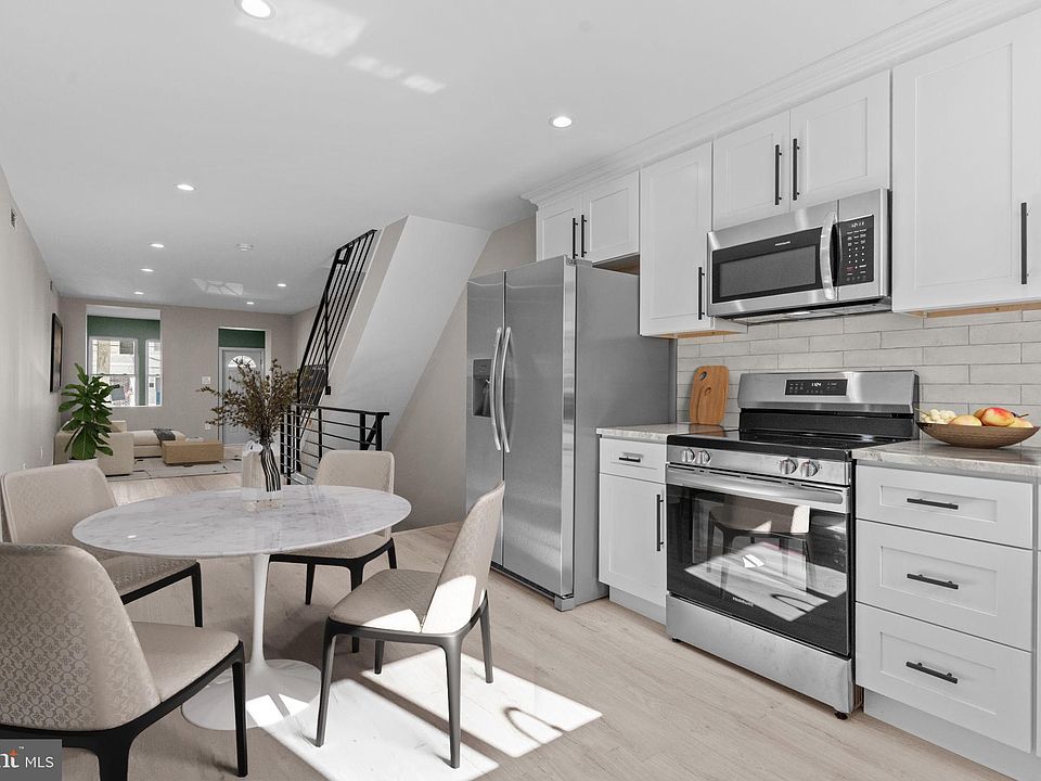 Welcome to 3233 Gaul Street, a completely renovated two-bedroom, two-full bathroom home in the heart of Port Richmond. From the moment you step inside, you’ll notice the meticulous updates and modern design throughout. An open foyer and sitting area welcome you into a bright living room that flows seamlessly into the eat-in kitchen. The kitchen features white shaker cabinets, subway tile backsplash, black hardware for a sleek modern touch, and stainless steel appliances. Upstairs, you’ll find two comfortable bedrooms and a beautifully updated full bathroom, complemented by a stylish new railing that ties the space together. The fully finished basement sets this home apart, offering additional living or entertainment space, a second full bathroom, and a separate laundry room. Outside, enjoy a private backyard that’s perfect for relaxing or entertaining. With brand new finishes from top to bottom, no detail has been overlooked—this move-in ready home is the perfect blend of modern comfort and Philadelphia charm. Don’t miss your opportunity to make it yours. All you have to do is unpack!
