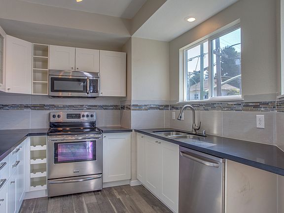 Virtual tour: Renovated with lovely hardwood floors throughout, this great home is filled with light thanks to large dual-paned windows. All three bedrooms have large built-in closets with double mirrored doors that project a sense of space. The well-proportioned master bedroom has a stylish ensuite bathroom with elegant matte tiles. The large second bathroom is conveniently placed right next to the other two bedrooms and living area. The sleek kitchen features stainless steel appliances, new fixtures and gorgeous custom-made cabinetry that allows plenty of storage space. The bright, open plan lounge and dining areas lead directly onto a private balcony where you can create your own potted plant oasis. Located off the interstate 580 and with off-street parking available to rent, you will live just 2 miles from Downtown Oakland and 1 mile from Lake Merritt. This move-in ready apartment offers maximum convenience and easy-care living. Utilities: Tenant responsible for water and electricity. Owner will cover garbage. Parking: One assigned parking space. Free for the 1st year & $75/mo thereafter Storage: Additional Storage units available on site. Free for the 1st year & $40/mo thereafter Laundry: On-site coin-op Washers/Dryers