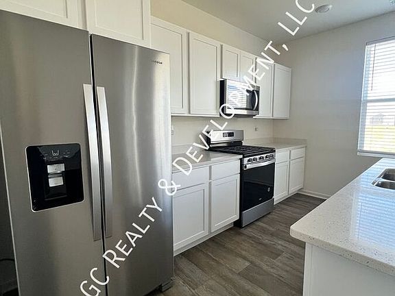 Spacious 4-bedroom, 2.5-bath home featuring a modern kitchen with stainless steel appliances, breakfast bar/island, and in-unit laundry. Enjoy wood laminate flooring, carpeted bedrooms, and walk-in closets. Includes central AC, gas furnace, and an attached 2-car garage with driveway parking. Pet friendly with a large yard and rear patio. Newer construction with tenants responsible for all utilities.