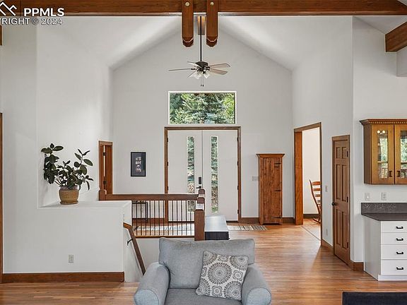 Tucked in among towering pines and aspen sits an impressive mountain home in Woodland Park, Colorado! Designed down to every feature, this 4,700 square foot, five bedroom, five bathroom home is completely custom. Creating gathering space was a primary motivator in the finished product which can be seen and felt in several details. The home is of a clean mountain design with well-planned, main floor, great room style living, featuring expansive windows that bring the outdoors in, soaring ceilings with exposed beams and two massive decks that extend the entirety of the rear elevation of the home. Each bedroom, two on the main level (including the master) and three in the walk-out basement, has an attached bathroom! The home has undergone several recent upgrades to include a newly designed kitchen with a large quartz topped center island, water heater, furnaces (2), carpet, paint, window blinds, fencing, garage door openers, light fixtures, front door, washer and dryer. Gathering and entertaining spaces contained in the walk-out basement are a theater/media room, game room, family room with a wet bar and fireplace and walk-out to the large lower deck. This home feels very private on its large .67 acre lot and has numerous options to hang out and enjoy the outdoors. The fenced yard is a great mix of mature, tall spruce and aspen trees with some mountain grass areas. Ample wildlife will visit! Great location in a desirable neighborhood, and close to the town of Woodland Park and its amenities. It’s so easy to jump on one of the numerous hiking and biking trails around the community. The Shining Mountain Golf Course is a very short walk or drive and endless recreation is available in the Woodland Park/Teller County area!