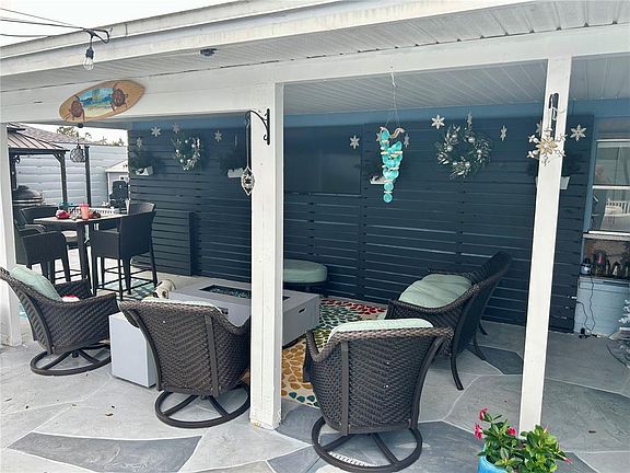 Nestled in a prime Sarasota location just minutes from Siesta Key Beach, downtown dining, shopping, and local parks, 3233 Teal Ave is a beautifully updated 2/2/2 home with a resort-style backyard built for relaxation and entertaining. The stunning 12x24 saltwater pool (2022) features a sundeck, PebbleTec finish, and solar heat, complemented by a spacious concrete patio (2024) and freshly resurfaced pool deck (2025). Inside, you’ll find modern upgrades throughout, including sliding glass doors with power blinds (2022), recent interior paint, wallpaper, and molding (2025), and a kitchen remodel boasting Corian countertops, new LG appliances, updated fixtures, and a recessed bar with built-in fridge (2023). The home also offers a master bath with granite countertops (2019), a fully remodeled second bathroom (2025), and added comfort with updated attic insulation (2020). Exterior enhancements include an 8-ft privacy fence (2024), new exterior paint (2023), and refreshed front landscaping (2025). Two backyard sheds and the “grillzebo” convey with the property, and some outdoor furniture may remain to help sweeten the deal—making this home truly move-in ready and perfectly situated to enjoy everything in Sarasota.