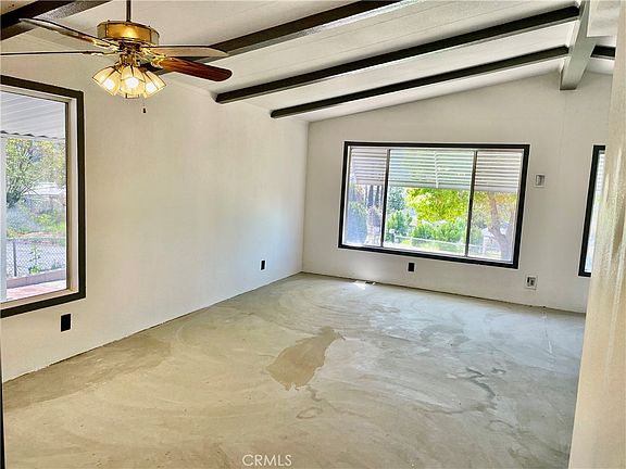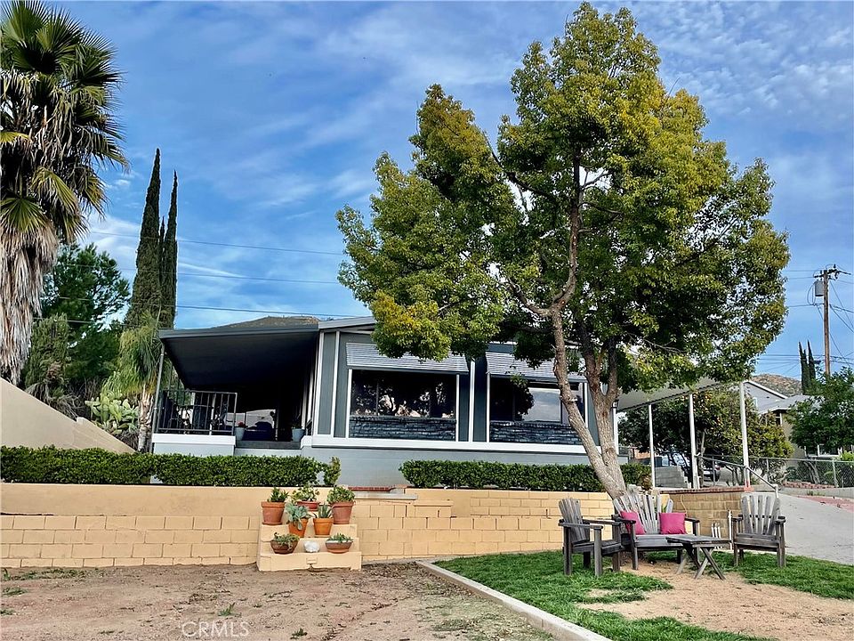 the Ortega Mountains, and stunning sunsets. It has a cozy kitchen open to the large family/entertainment room which has a built in bar and a pool table. There is a sliding door from the family/entertainment room which goes out to a covered deck area. The raised deck area is perfect for entertaining or just sitting and enjoying the lake, mountain, sunset views and July 4th fireworks that the City of Lake Elsinore performs. The laundry room has counter tops, cabinets, a closet, sink, and is set up for a washer and electric or gas dryer. The primary bedroom has a walk in closet and a spacious adjoining ensuite with a tub big enough for two plus a separate shower and a bathroom vanity with lots of mirrors and dual sinks. There is a second bedroom with a bathroom in the hallway. The outside front of the home offers a large fenced yard for kids & pets, a shady tree in the front, and lots of planters for your green thumb gardening desires. The right side of the home has a long covered carport with an entrance into the home's laundry room. There is also an outside patio area with a mature orange tree and a covered shed. Small area in back with walkway and built in planter. The living, dining and second bedroom has no floor covering and sellers are offering $5000 credit for that purpose. Currently not on a permanent foundation but sellers will consider doing so if required for conventional/FHA financing requirements. Owner would consider financing to a qualified buyer with 10% or MORE down payment. CALL FOR INFORMATION. Rate & Terms to be determined. Currently on septic with sewers expected soon and connection to be at no cost to owners! SHOWN BY APPOINTMENT ONLY. LISTING AGENT WILL BE PRESENT. BUYER'S AGENT MUST ALSO BE PRESENT.