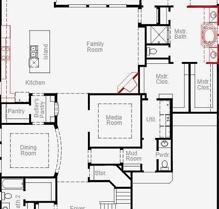This stunning two-story home has it all, showcasing 5 bedrooms, 4.5 bathrooms and 3-car garage. Enter through the impressive entry and discover a beautiful staircase, private study and guest bedroom with en suite bath, providing functionality and comfort. Entertain in style in the formal dining room, seamlessly connected to the gourmet kitchen via the butler's pantry. The kitchen is a chef's delight, featuring a large island with ample storage, built-in appliances, a walk-in pantry, and a charming breakfast nook. Relax in the family room, boasting 19ft ceilings, and views that lookout to the Texas-size covered patio, or cozy up in the first-floor media room for a movie marathon. With 5 spacious bedrooms and 4.5 baths and a large corner lot you'll have plenty of space for everyone. Your dream home awaits – visit today!