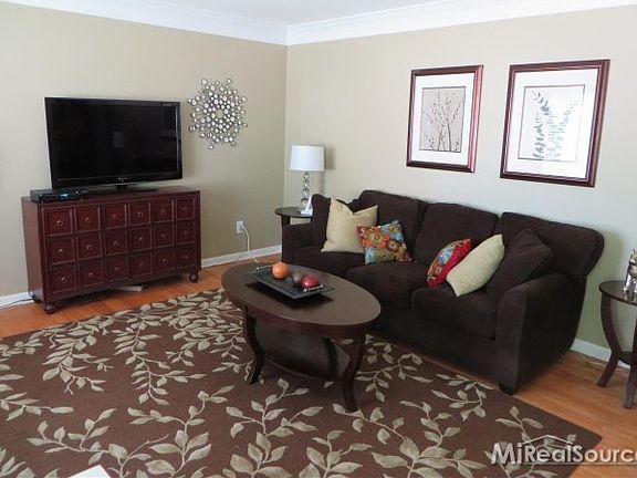 Cute 3 bedroom ranch in excellent and clean condition. Eat-in kitchen. Living room with crown moulding. Vinyl windows and Hardwood floors throughout. Finished basement, Newer HWT. Security system. School of choice, Roseville or Fraser.