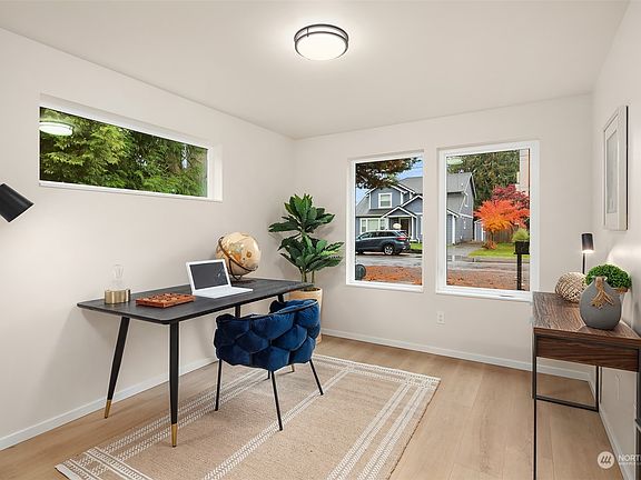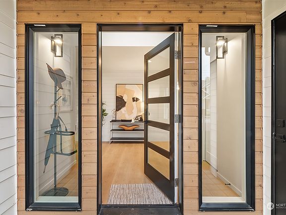 From local builder, Modern Homes comes this striking new construction home in desirable Wedgwood. Dramatic three-story entryway opens to the main floor, including bedroom, full bath and laundry room, complete with washer & dryer. Flexible floor plan creates space for use as nanny suite, guest quarters, or home office. Second level hosts sizable open-concept great room with unique touches including gas fireplace, walk in pantry, and powder room. Upstairs, find your primary suite, two additional bedrooms and full bath. Roof deck perches you above the neighbors for private entertaining space. Finishing touch is a rare two-car EV-ready garage. Blocks to Wedgwood shops & restaurants, plus near to U Village, UW, Children's & Burke-Gilman Trail.